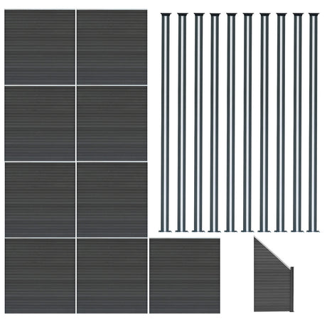 Estoque reduzido (3 unidades)€3.199,99Preço unitário /IndisponívelVedação de Exterior em WPC e Alumínio – 9 Painéis + 10 Postes | Cinza