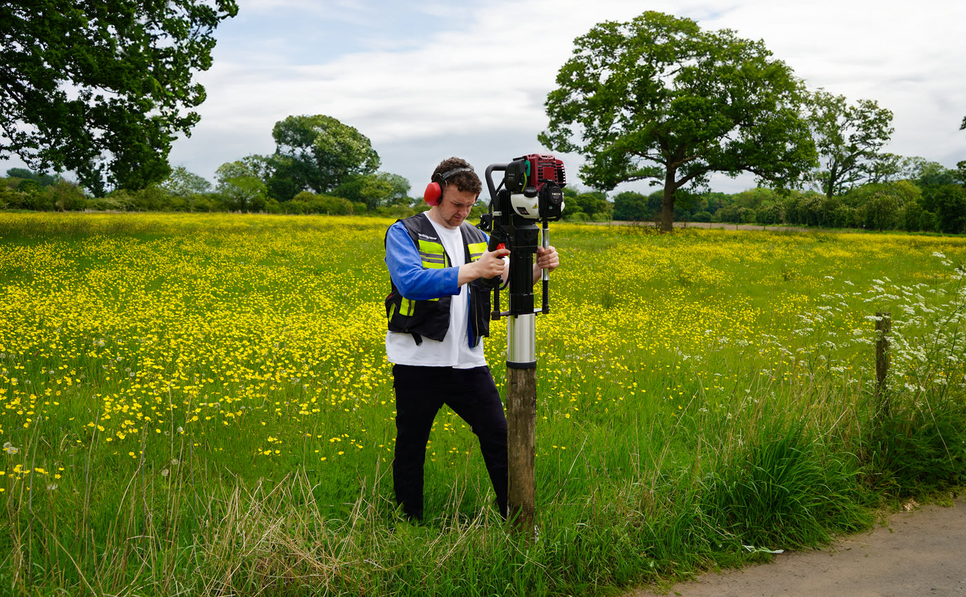 O conforto é uma prioridade com o design ergonômico da alça, minimizando vibrações e reduzindo a fadiga do usuário durante o uso prolongado. Sua construção leve permite fácil manuseio e posicionamento preciso dos postes. Além disso, a partida do motor é simples graças ao sistema de arranque retrátil de fácil acionamento.