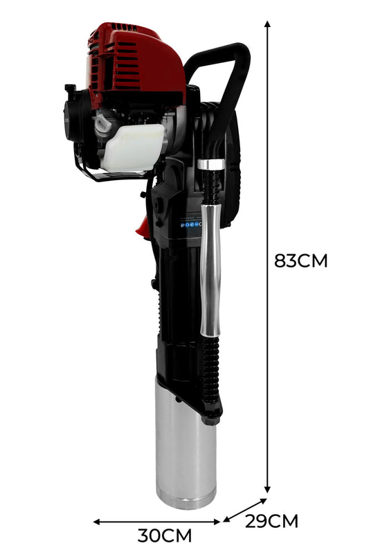 Equipado com um robusto motor monocilíndrico de 4 tempos refrigerado a ar de 37,7 cc, nosso cravador de postes fornece potência constante e desempenho superior. Com uma impressionante força de impacto de 1350 rpm, ele finca postes de diversos materiais em solos difíceis e rochosos com facilidade, economizando tempo e esforço em instalações que exigem alta mão de obra.