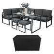 O conjunto inclui uma prática capa impermeável que protege os seus móveis das intempéries quando não os está a utilizar. Esta cobertura adicional ajuda a preservar a aparência e a durabilidade do conjunto, permitindo-lhe passar mais tempo a desfrutar do ar livre e menos cuidados.