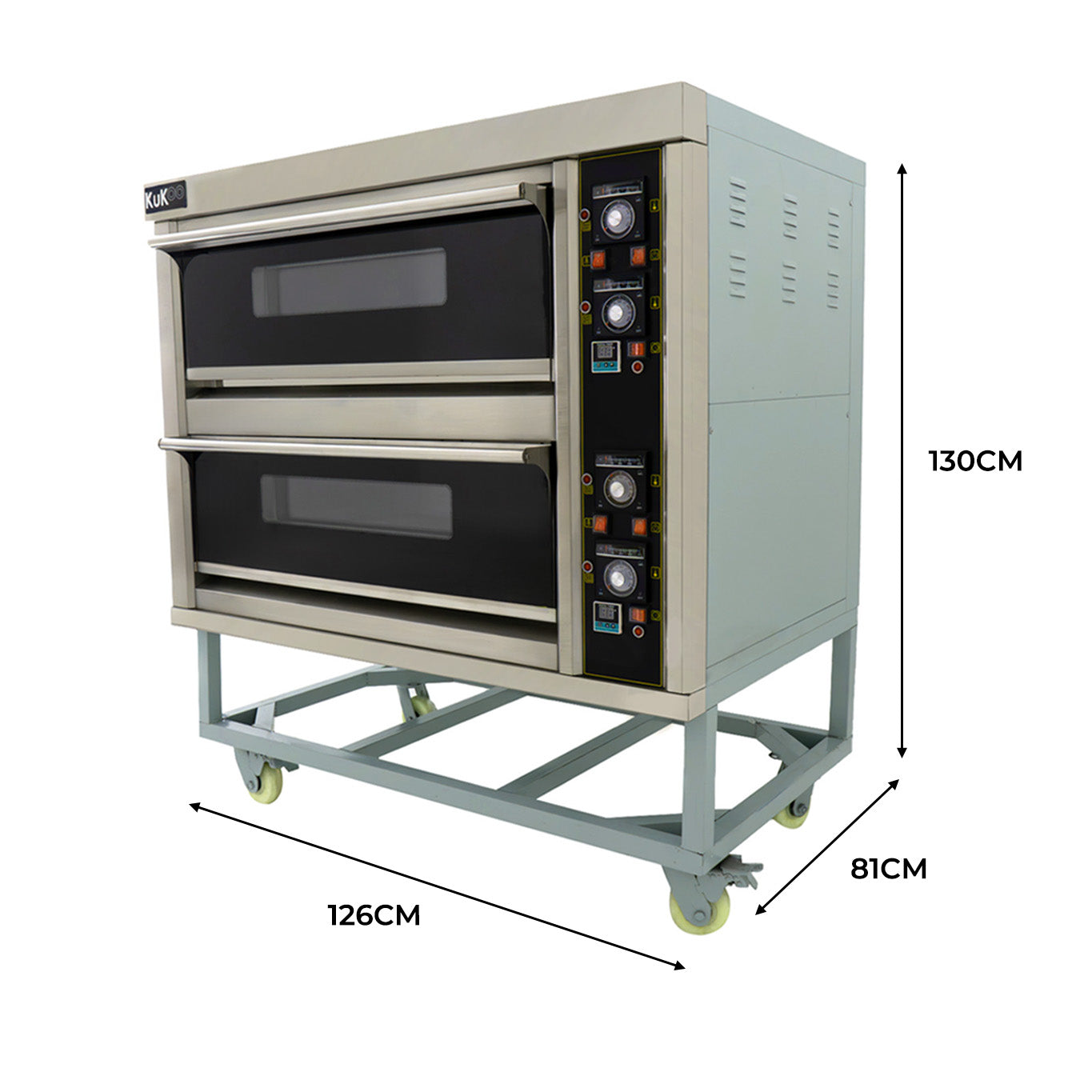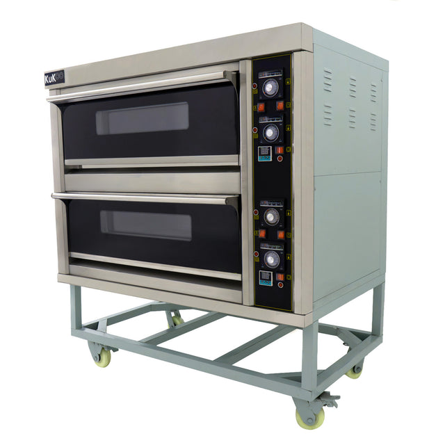 Este forno comercial para cozinhar pizza KuKoo é perfeito para restaurantes, cafés, restaurantes para viagem, pubs ou padarias. Autónomo e portá til graças á…s suas 4 rodas, este grande forno comercial possui duas cámaras que podem ser controladas separadamente e podem acomodar até 12 pizzas de 25cm.