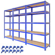 3 prateleiras de aço T-Rax sem parafusos azuis com 90 cm de largura