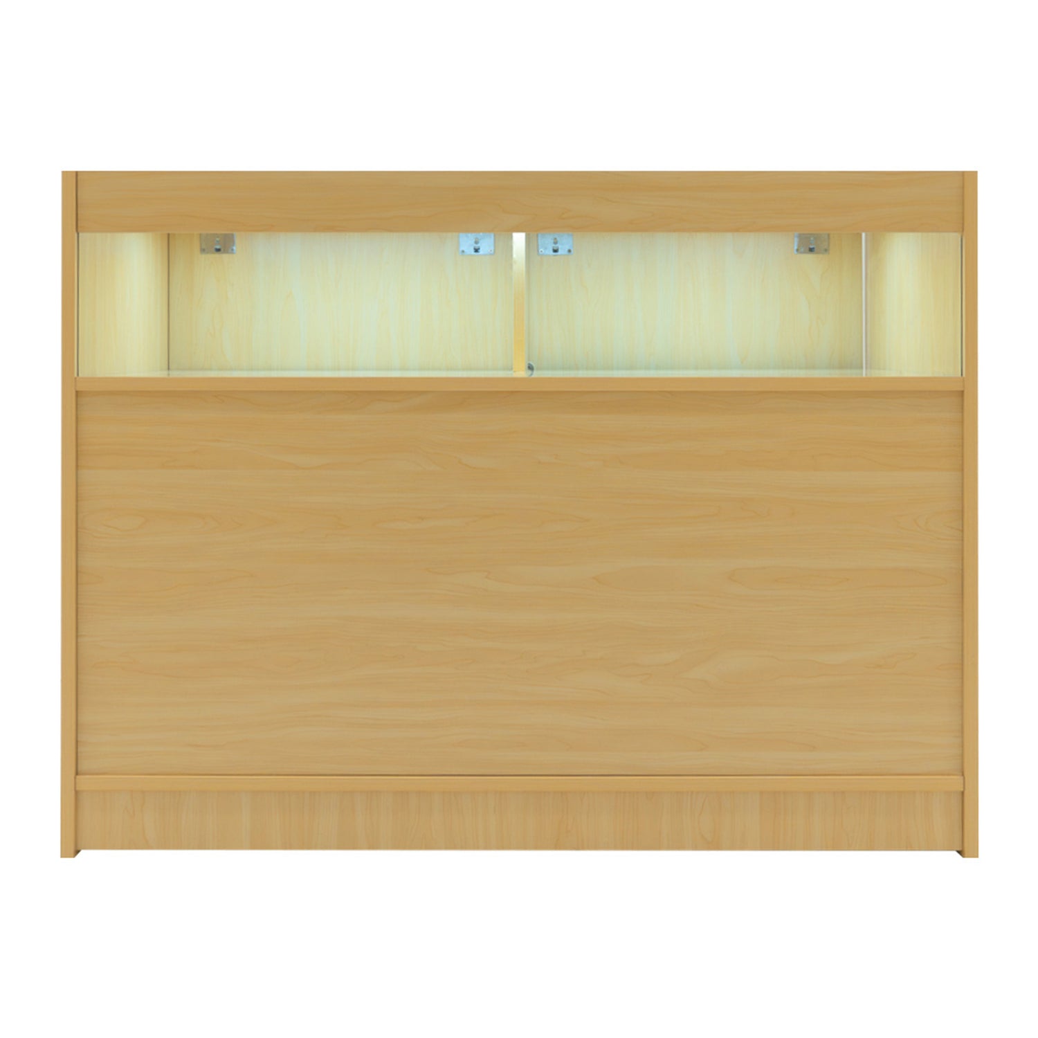 Todos os balcões são fabricados em MDF de alta qualidade com acabamento em melamina cor maple resistente, garantindo durabilidade e uma aparência moderna e uniforme. Esse acabamento compartilhado cria uma estética coesa em todo o conjunto, enquanto os painéis de vidro temperado do B1200 adicionam um toque refinado às áreas de exposição mais destacadas.