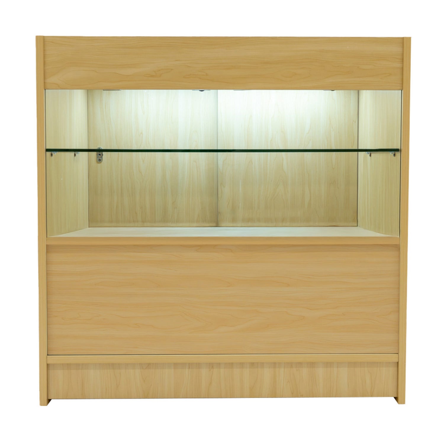 Os balcões com iluminação LED B900/B1200/B1500 oferecem uma solução de apresentação moderna e elegante que combina o impacto visual com a praticidade para o dia-a-dia. Cada unidade possui iluminação LED branca brilhante que melhora a visibilidade do produto, garantindo que a sua mercadoria chama a atenção mesmo em condições de pouca luz. Com uma prateleira de exposição visível através do vidro frontal e duas prateleiras fechadas ao público, os balcões B900/B1200/B1500 conseguem o equilíbrio perfeito entre o armazenamento seguro e a exposição dos produtos. As portas traseiras deslizantes com fecho mantêm o stock protegido, mantendo uma aparência limpa e organizada para o cliente. Quer se trate de expor joias, acessórios ou produtos de alta qualidade, os balcões B900/B1200/B1500 proporcionam um ponto focal profissional e requintado.