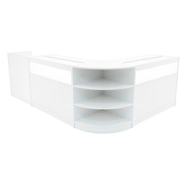 Todos os balcões são fabricados em MDF de alta qualidade com acabamento em melamina branca durável, garantindo desempenho prolongado e uma estética contemporânea uniforme. Este acabamento comum cria uma aparência coesa em toda a disposição, enquanto os elementos de vidro temperado do B1200 acrescentam um toque refinado às principais áreas de exposição.