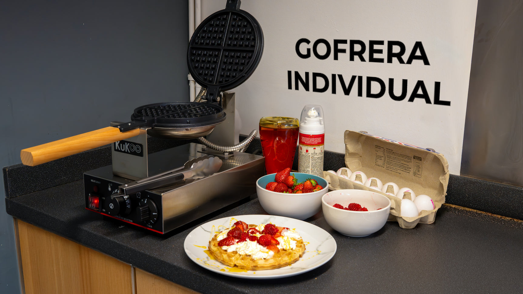 Atualize sua cozinha comercial e prepare guloseimas irresistíveis com esta má quina de waffles individual da KuKoo.