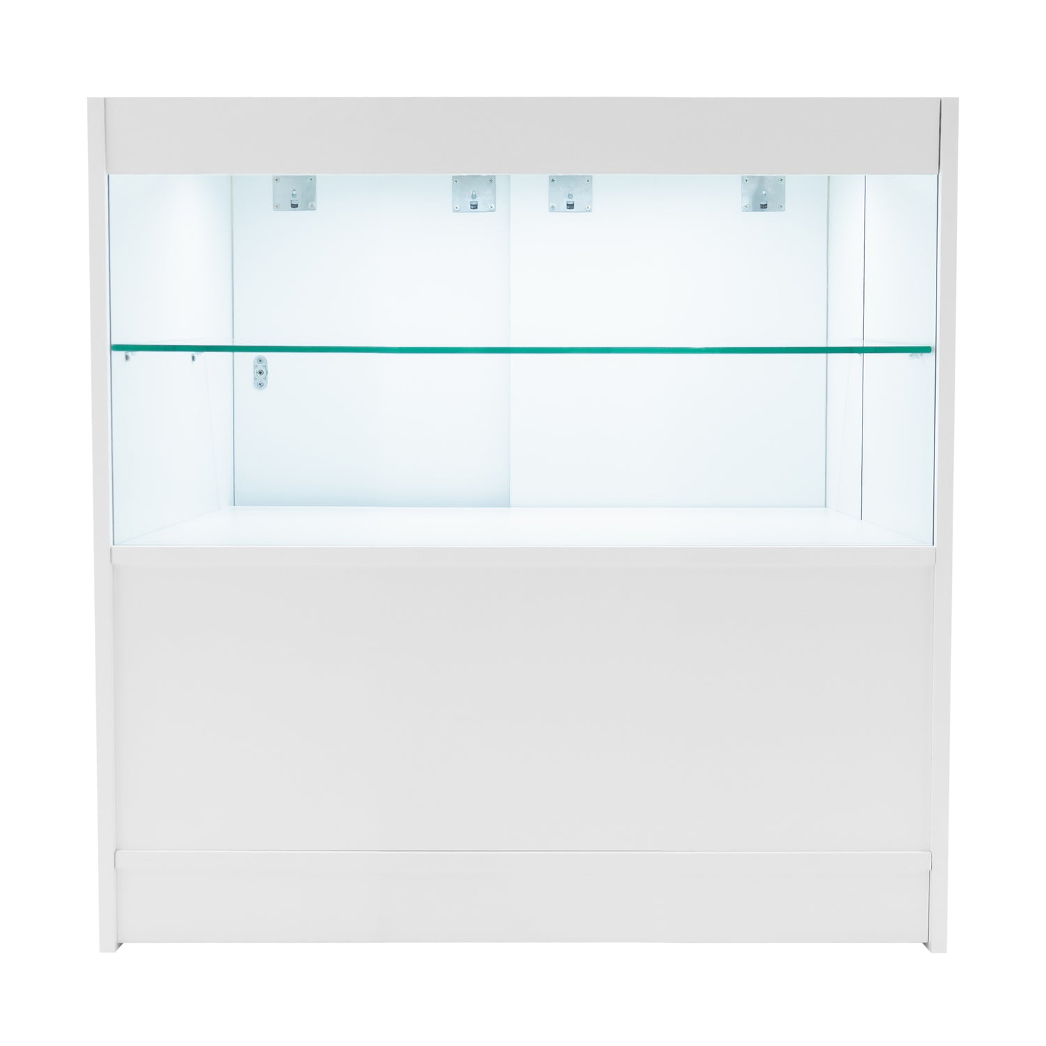 Os balcões com iluminação LED B900/B1200/B1500 oferecem uma solução de apresentação moderna e elegante que combina o impacto visual com a praticidade para o dia-a-dia. Cada unidade possui iluminação LED branca brilhante que melhora a visibilidade do produto, garantindo que a sua mercadoria chama a atenção mesmo em condições de pouca luz. Com uma prateleira de exposição visível através do vidro frontal e duas prateleiras fechadas ao público, os balcões B900/B1200/B1500 conseguem o equilíbrio perfeito entre o armazenamento seguro e a exposição dos produtos. As portas traseiras deslizantes com fecho mantêm o stock protegido, mantendo uma aparência limpa e organizada para o cliente. Quer se trate de expor joias, acessórios ou produtos de alta qualidade, os balcões B900/B1200/B1500 proporcionam um ponto focal profissional e requintado.