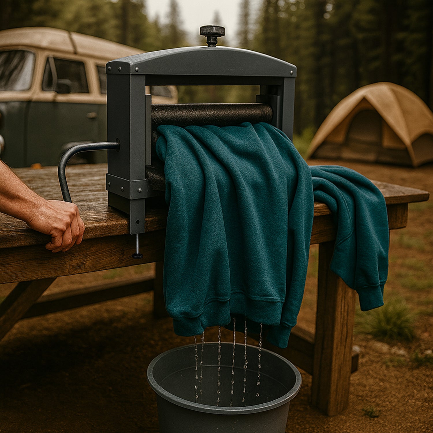 Pensado para remover até 95% da água e líquidos de panos, roupas e esponjas, oferece um desempenho potente e eficiente sem necessidade de eletricidade. Fabricado em aço carbono maciço e acabado com um revestimento em pó protetor, este espremedor é uma ferramenta resistente, ideal para usos industriais, agrícolas, ambientais e para estilos de vida autossuficientes.