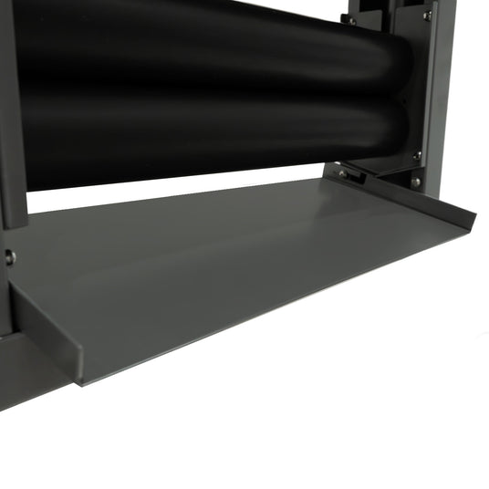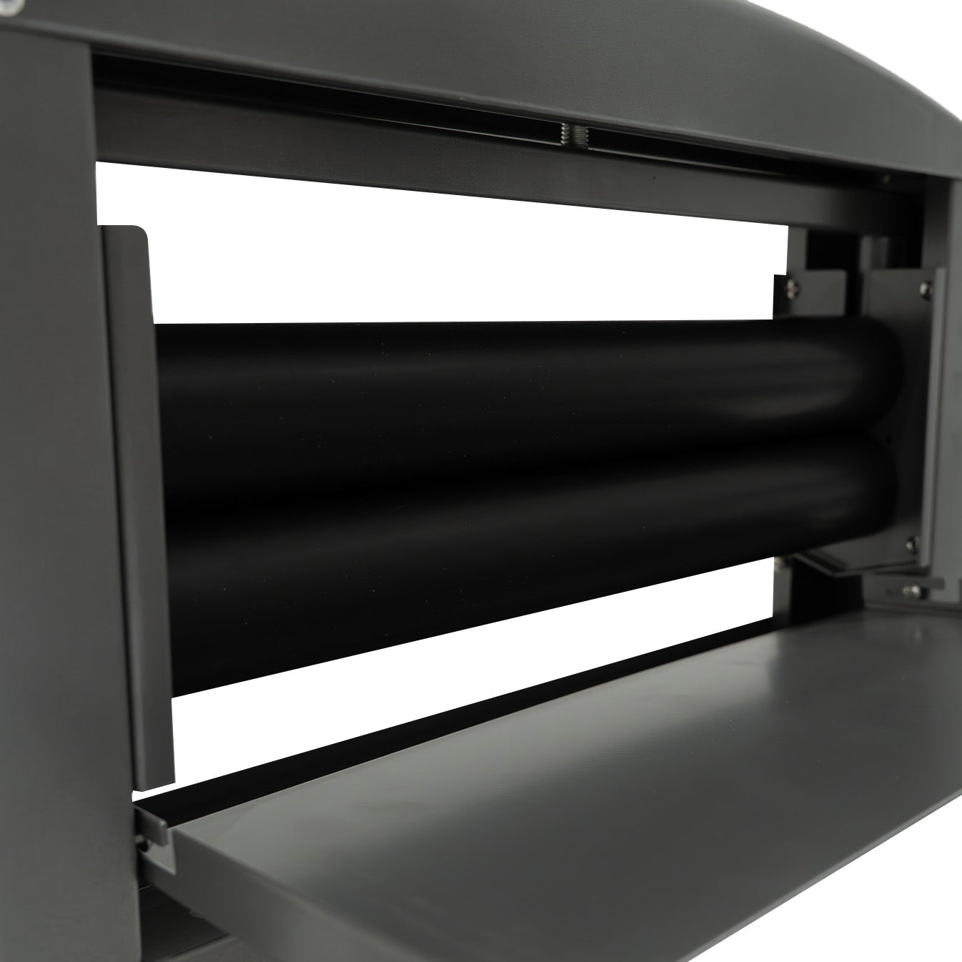 A bandeja de drenagem integrada canaliza o líquido para longe dos rolos através de um fluxo ordenado e controlado. Este design evita respingos e contaminação, protege o equipamento próximo e contribui para manter as áreas de trabalho mais limpas e organizadas.