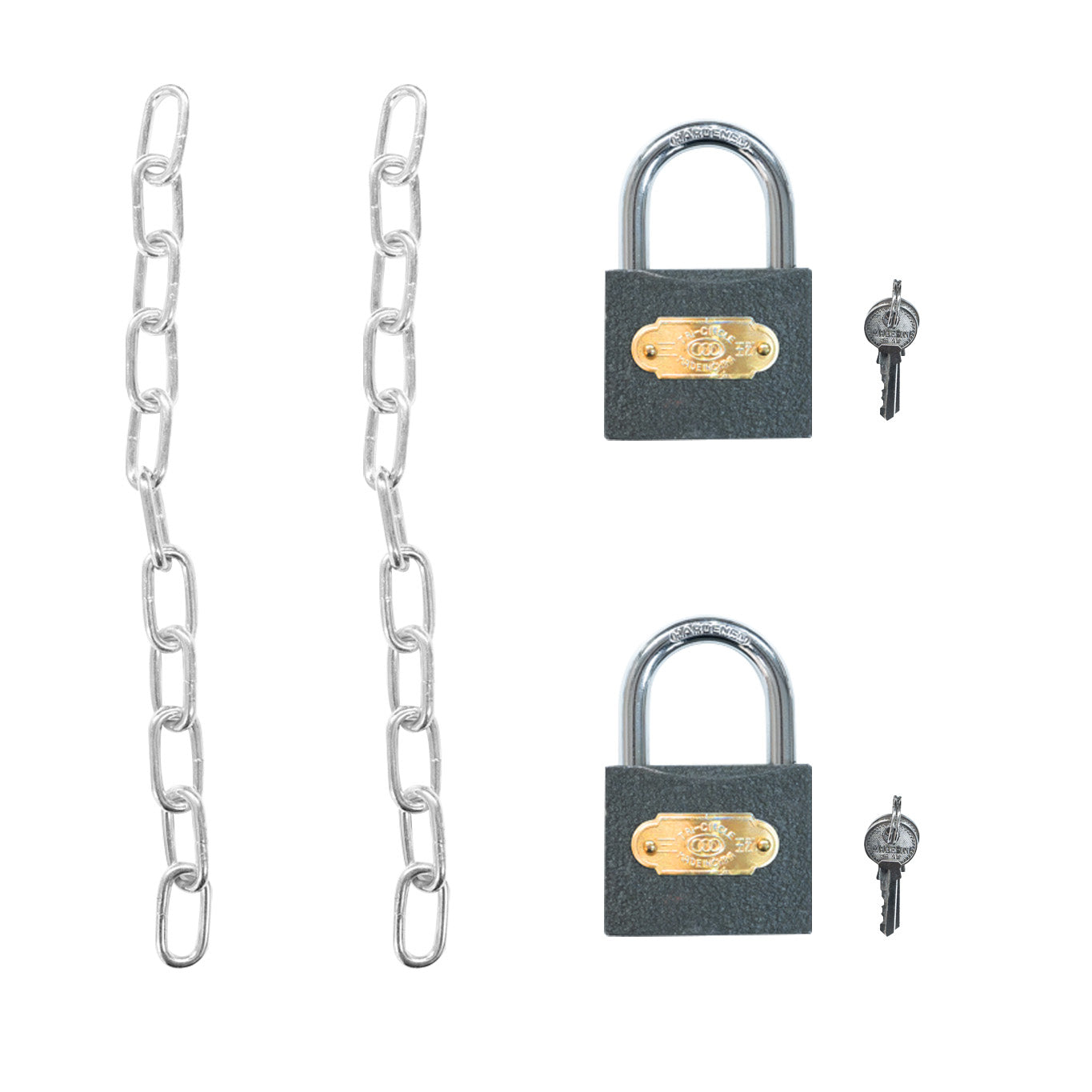 A gaiola foi projetada para acomodar confortavelmente até três garrafas de gás padrão de 19 kg, otimizando o espaço sem deixar de ser compacta. A segurança é uma prioridade, já que inclui um cadeado robusto com duas chaves para proteger os cilindros de acessos não autorizados. Além disso, um aviso de segurança claramente visível reforça as precauções necessárias.
