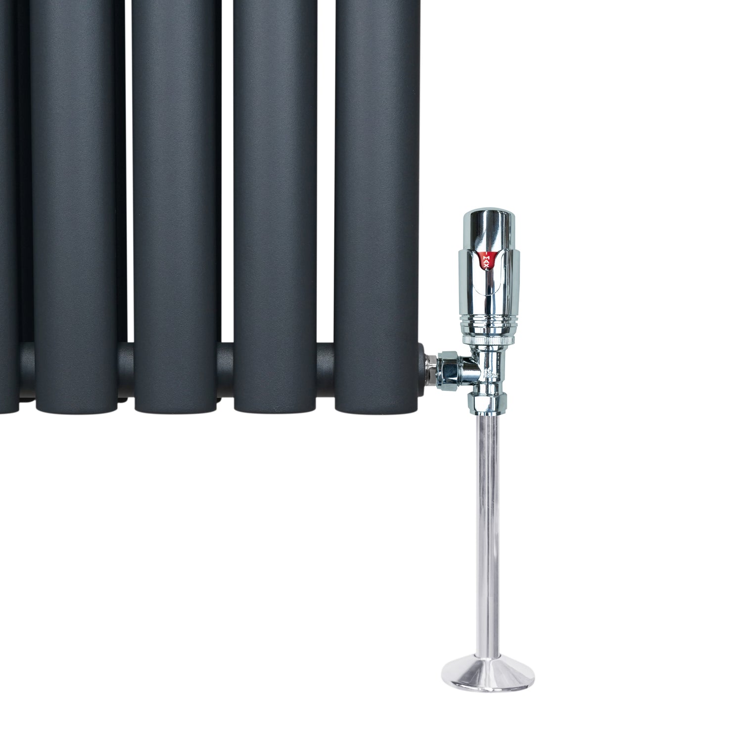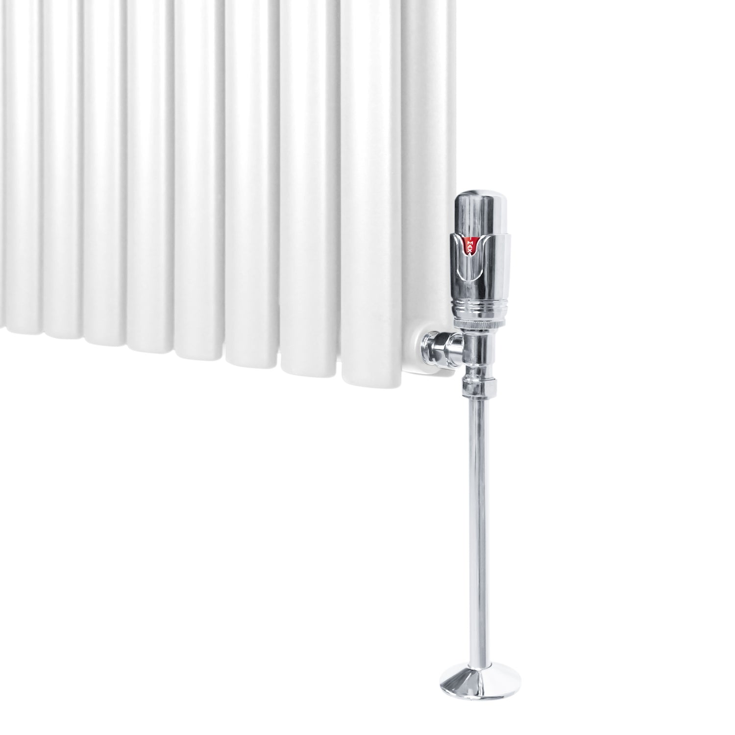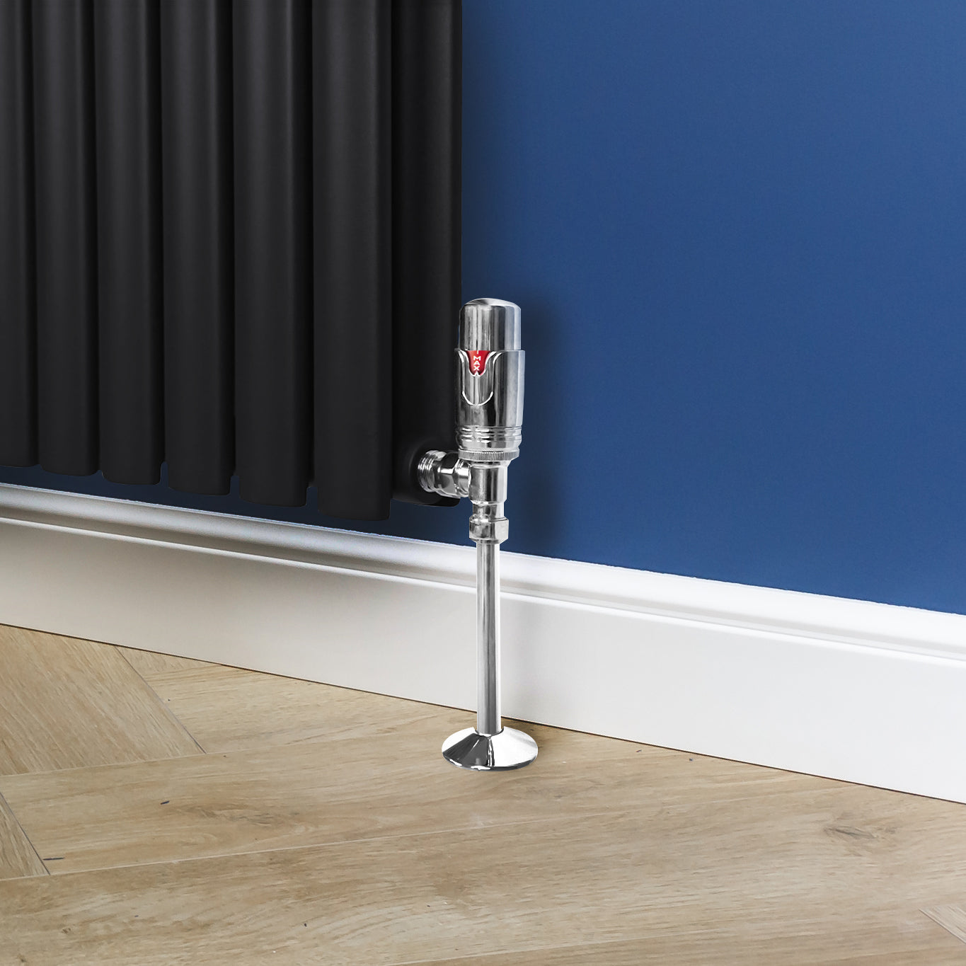 Estas válvulas termostáticas distinguem-se pelo seu design elegante em ângulo e acabamento cromado polido, adicionando um toque de sofisticação a qualquer divisão. O controlo rotativo permite ajustes fáceis e precisos, com uma faixa de temperatura entre 6 e 28 graus, para que possa definir o clima perfeito em cada espaço. Graças ao controlo multi-temperatura, mantém o aquecimento consistente e evita sobreaquecimentos. Além disso, as TRVs são compatíveis com todos os radiadores da Monster, graças à ligação BSP universal.
