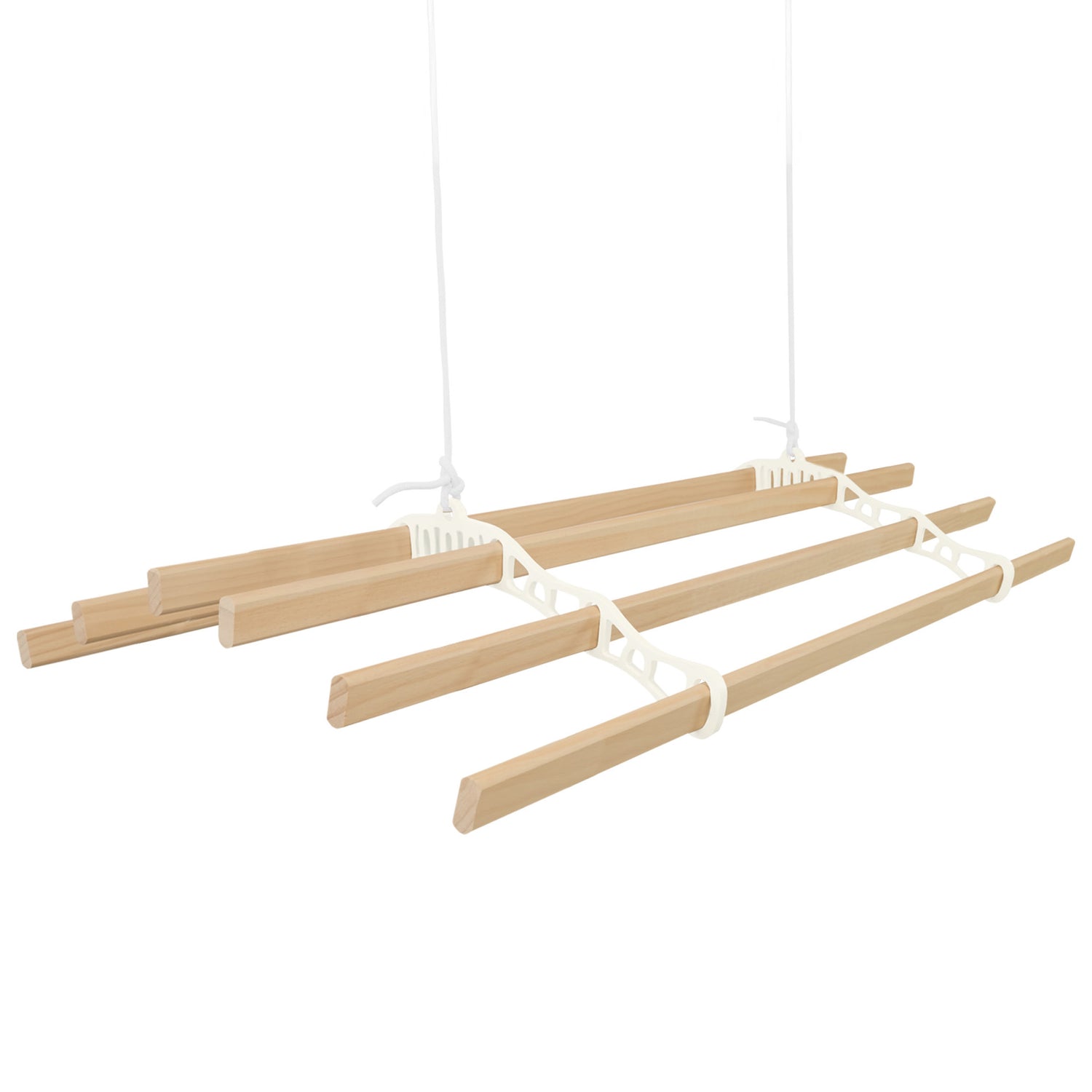 Descubra uma forma mais inteligente e elegante de secar a sua roupa com o nosso estendal de teto com sistema de roldanas de 2,4 m e 6 ripas, na sofisticada cor marfim.