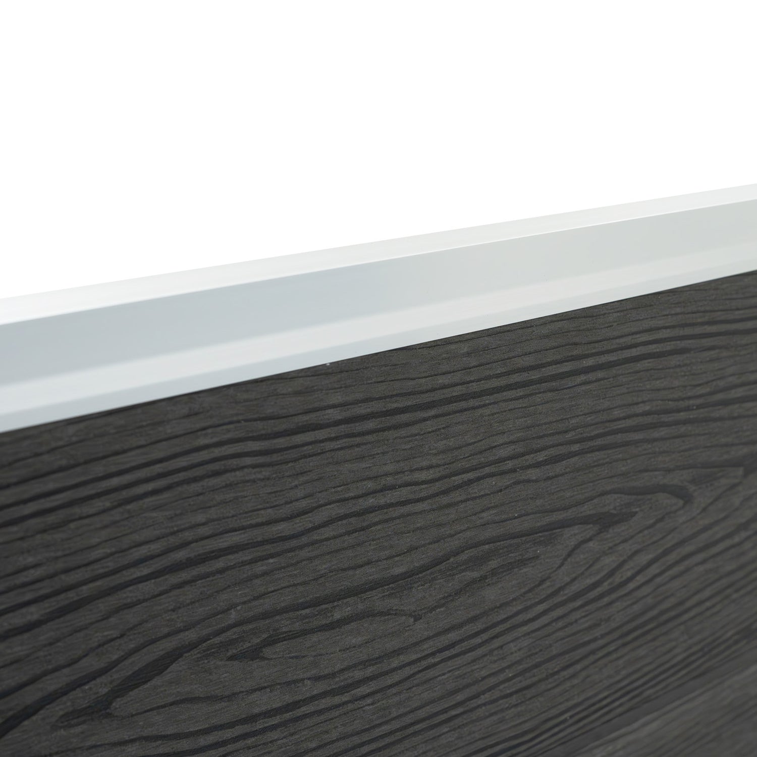 O design versátil de dupla face distingue este painel: um lado apresenta um elegante efeito de veios de madeira, enquanto o outro tem um acabamento moderno com ranhuras. Ambos os lados exibem um sofisticado tom cinzento, que capta a beleza da madeira sem necessidade de manutenção constante.